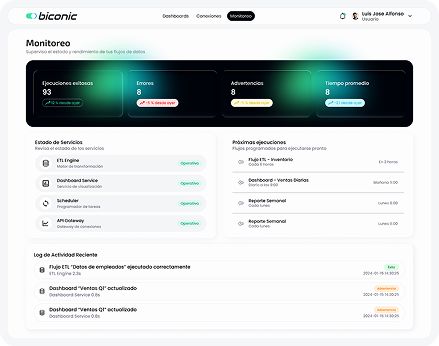 Conectamos tus sistemas, organizamos la información y la transformamos en dashboards, análisis y reportes claros.